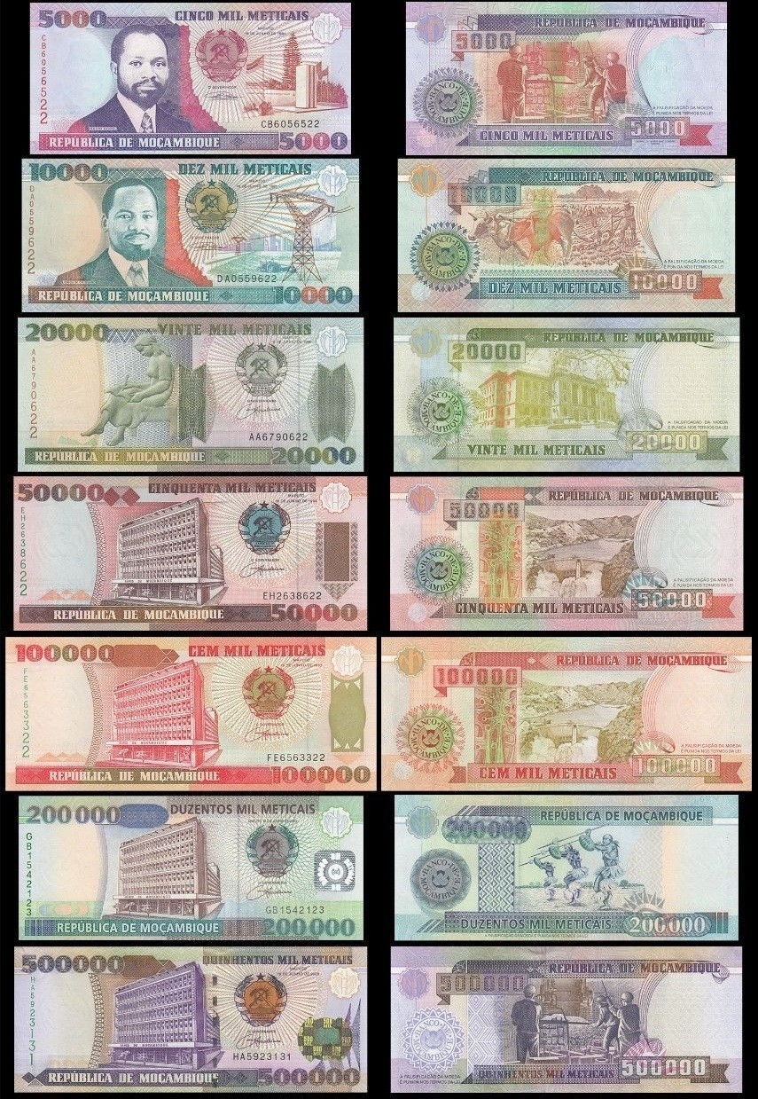 Mozambique 7 Pcs SET, 5000 to 500000 Meticais 1991 1993 2003, UNC