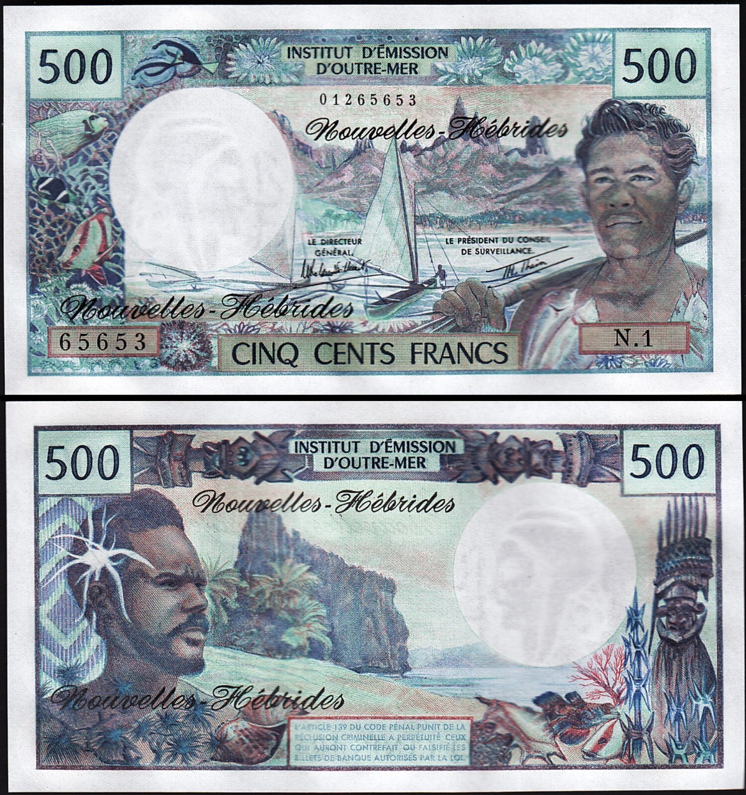 New Hebrides 500 Francs 1979, P-19c, Signature 3A