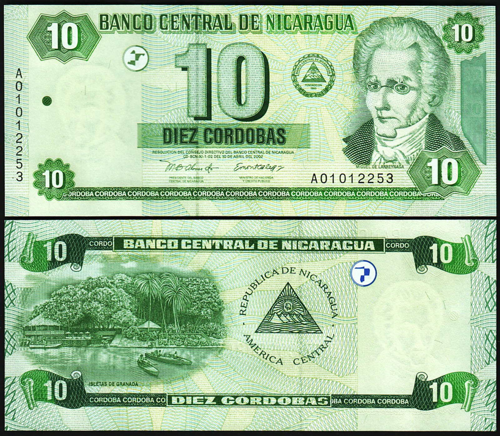 Nicaragua 10 Cordobas 2002, P-191, Serie A 01