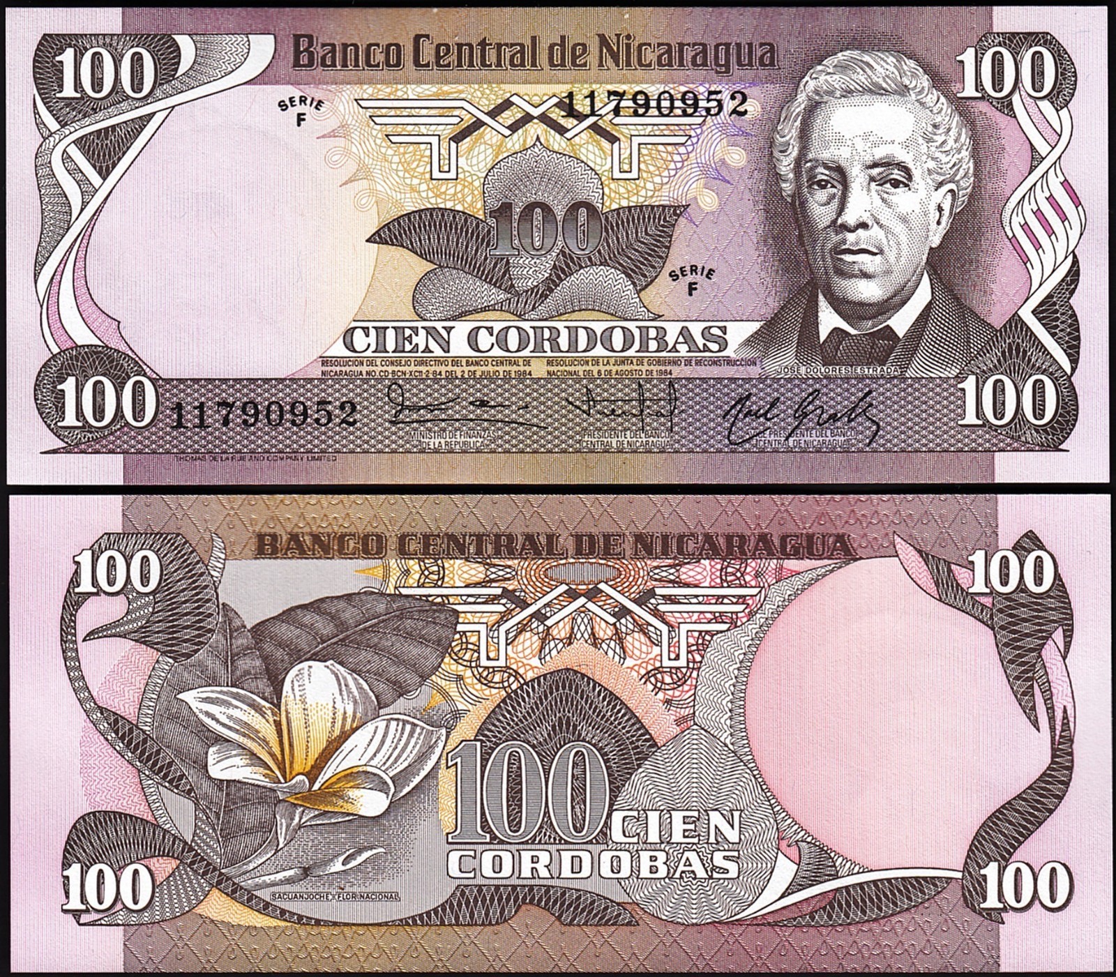 Nicaragua 100 Cordobas 1984, P-141, Serie F