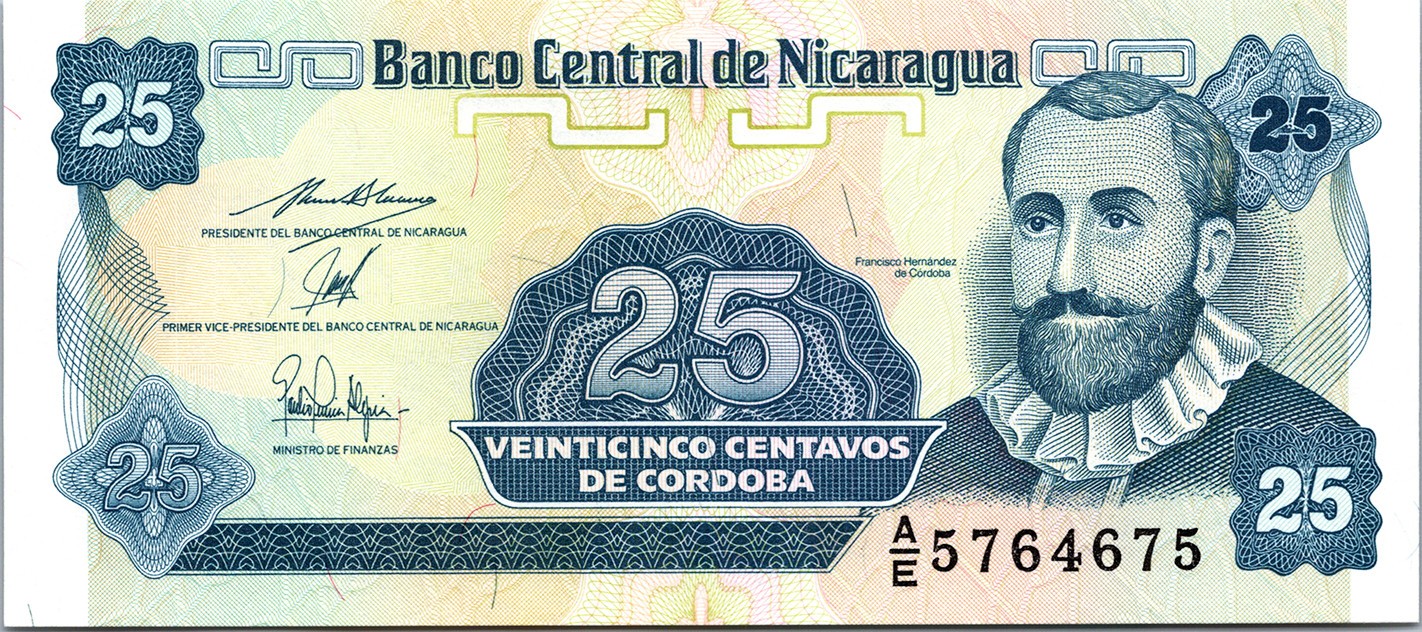 Nicaragua 25 Centavos 1991, P-170, Prefix A/E