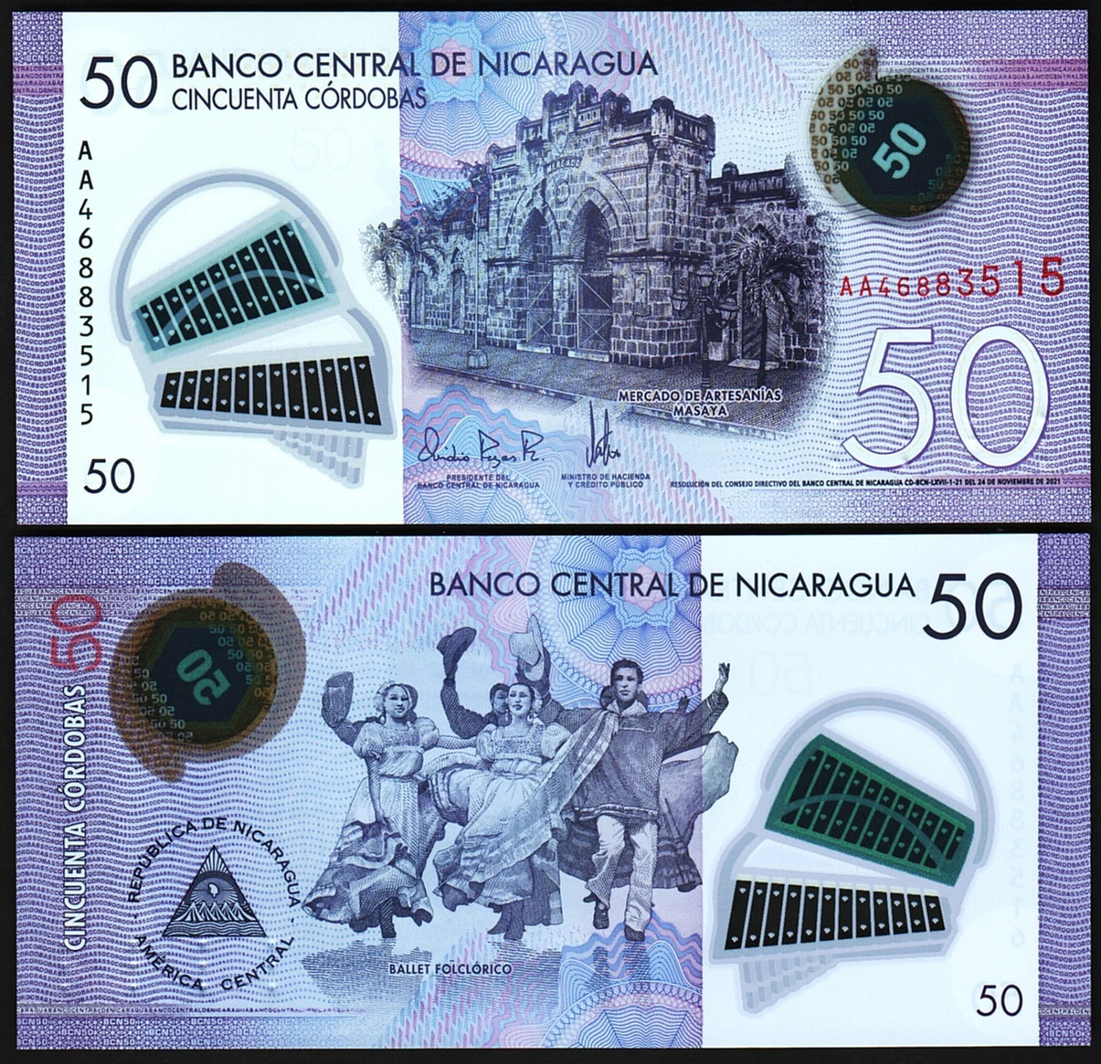 50 Cordobas 2021 – 2023, UNC, Polymer, P-211. Prefix AA