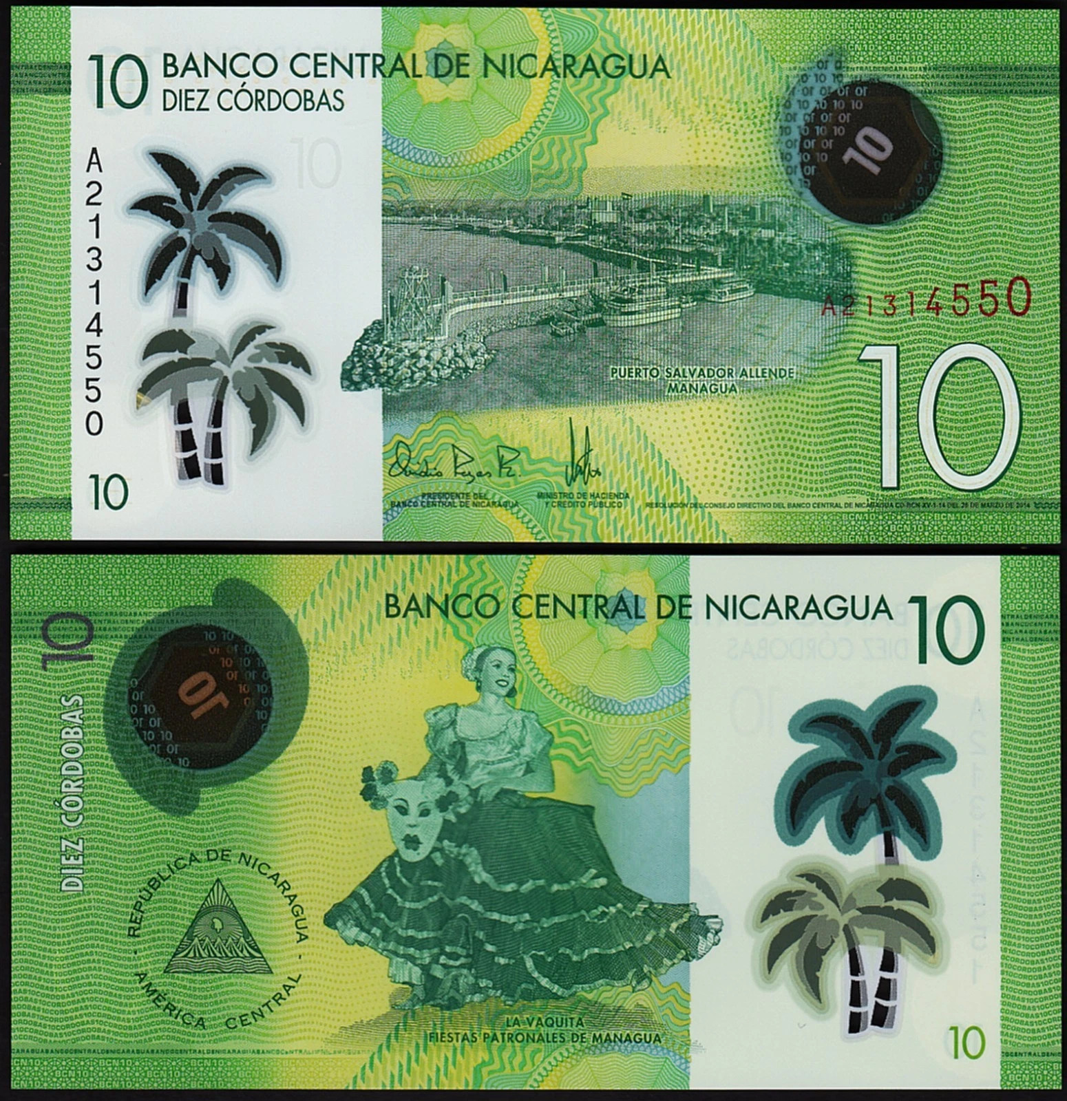 10 Cordobas 2014 2015, UNC, Polymer, P-209