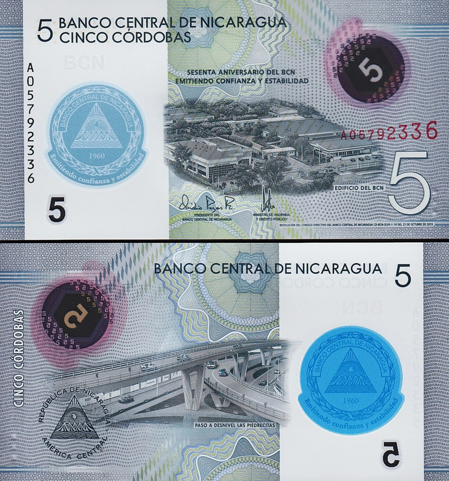 5 Cordobas 2019 2020, UNC, Polymer,P-219, Commemorative