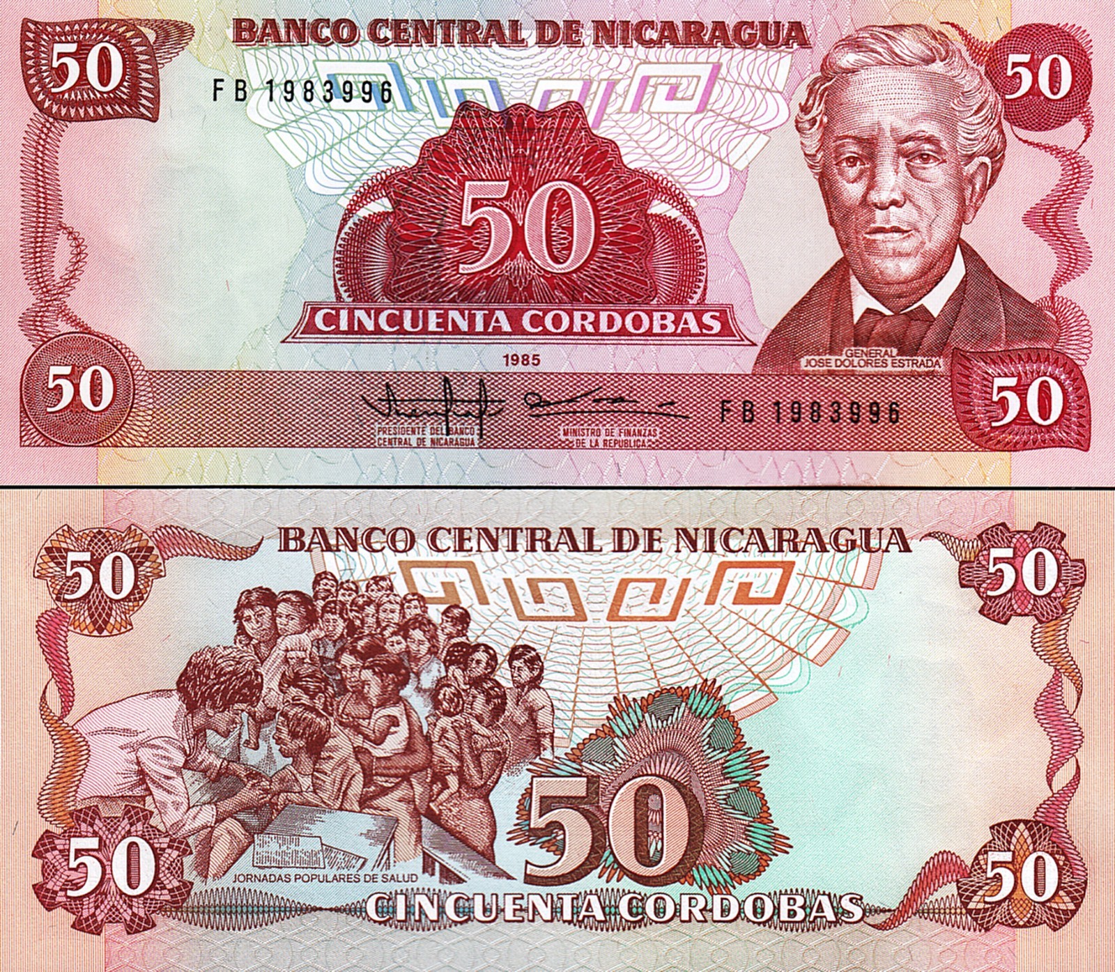 Nicaragua 50 Cordobas 1985, P-153, Serie FB