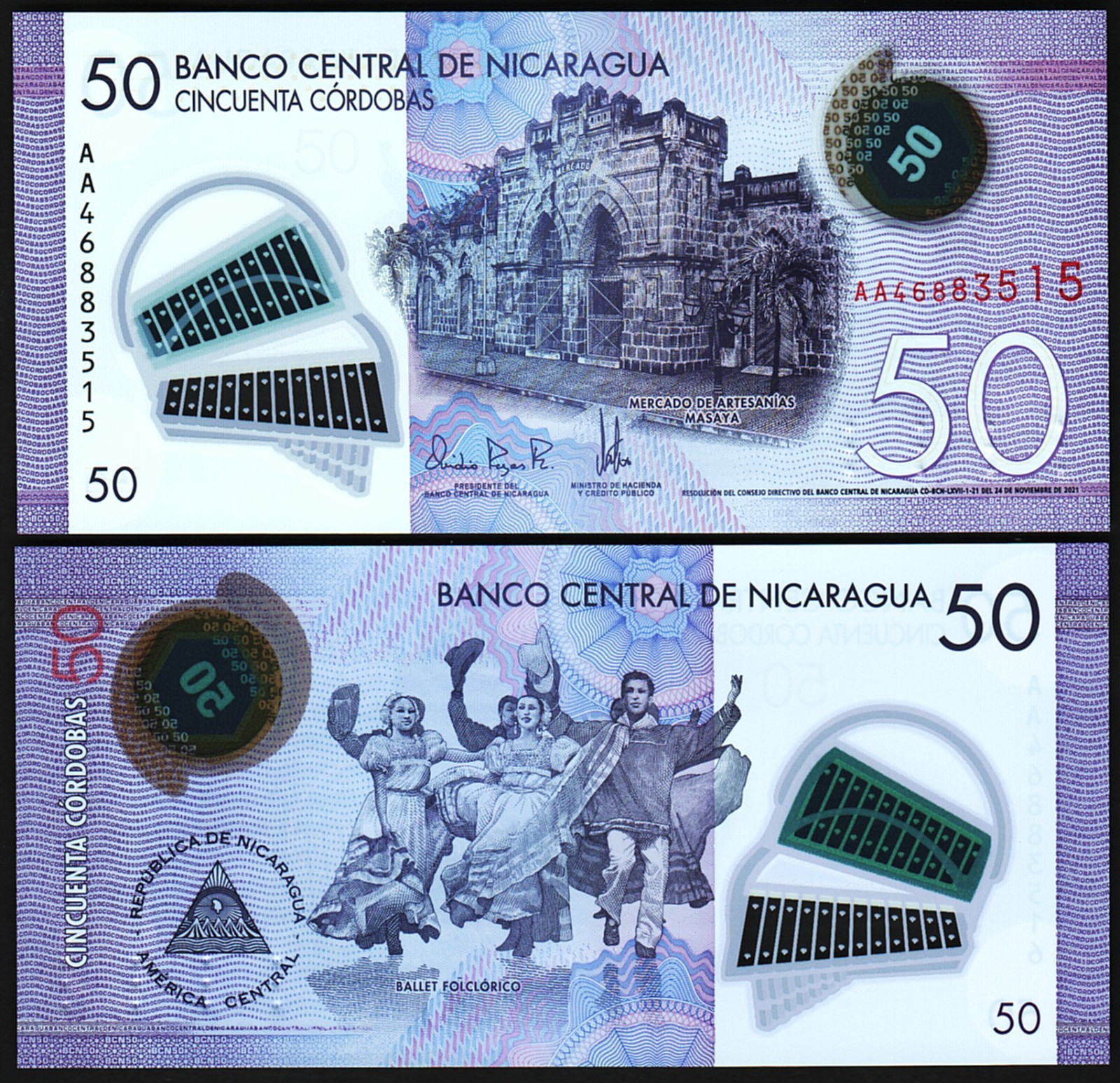 NICARAGUA 50 CORDOBAS 2021 (2023), P-NEW 211