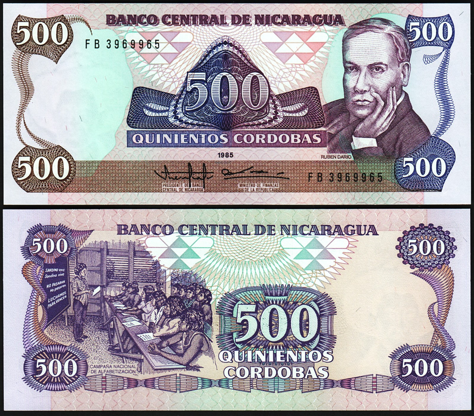 Nicaragua 500 Cordobas 1985, P-155, Serie FB