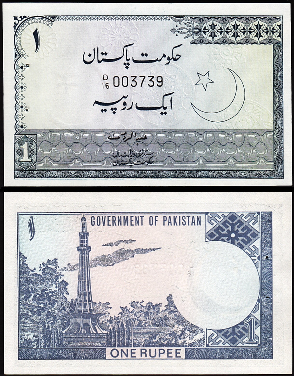 PAKISTAN 1 RUPEE ND 1975-1981, P-24A, SIGN 1