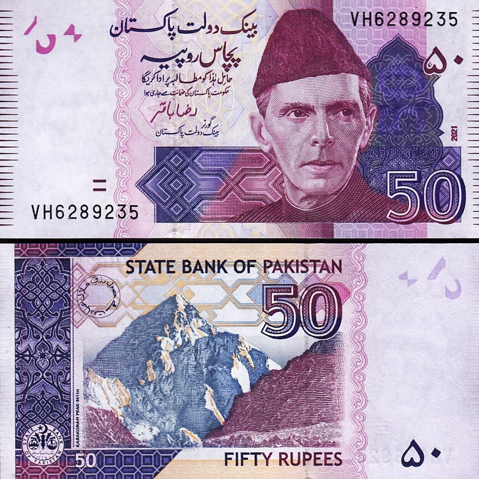 Pakistan 50 Rupees 2021, AU-UNC , 5 PCS LOT, P-NEW