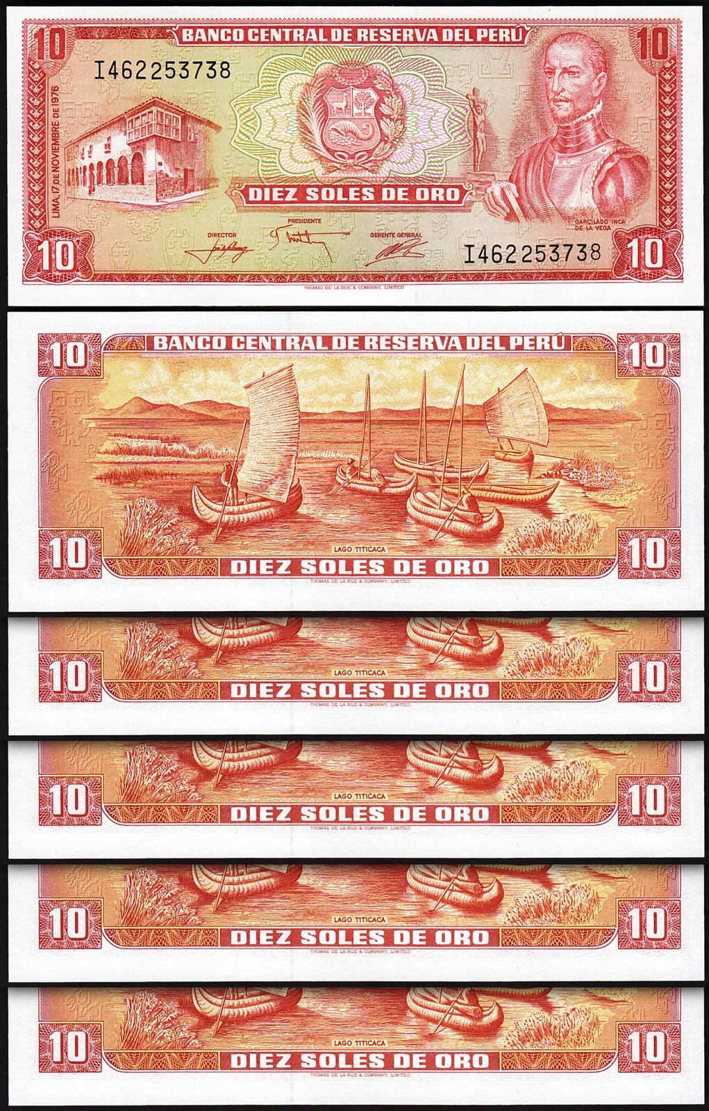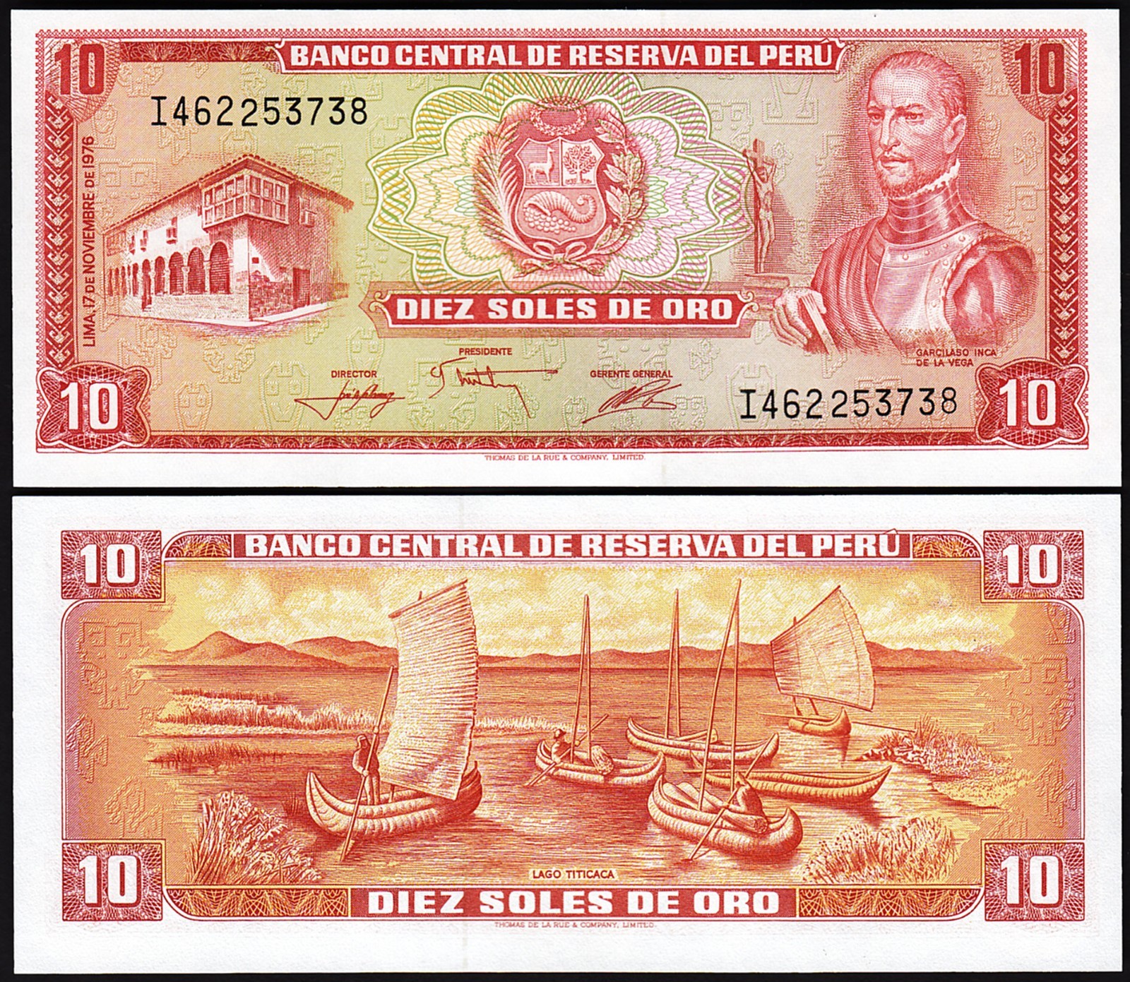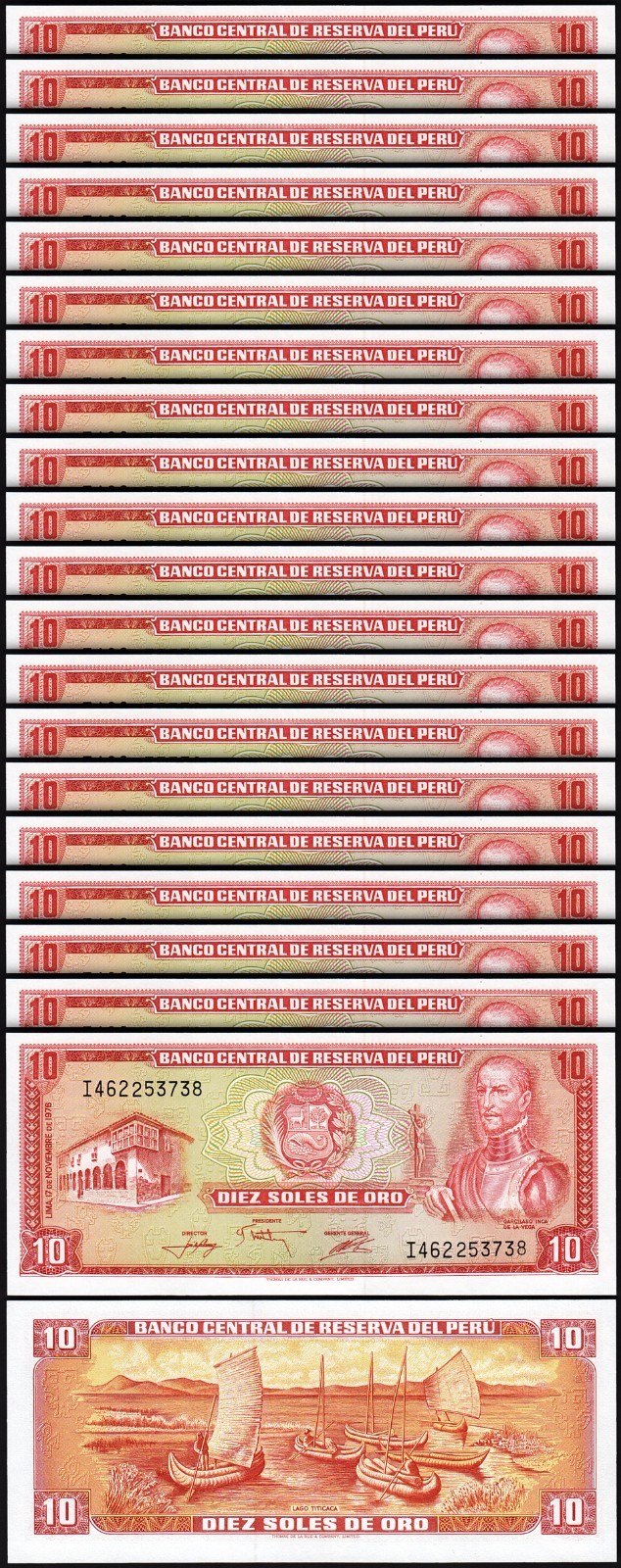 Peru 10 Soles De Oro 1976, P-112, Thomas De La Rue (TDLR) Printed