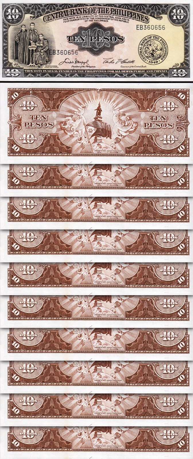 PHILIPPINES 10 PESOS 1949, P-136e, SIGN 5, PREFIX EB