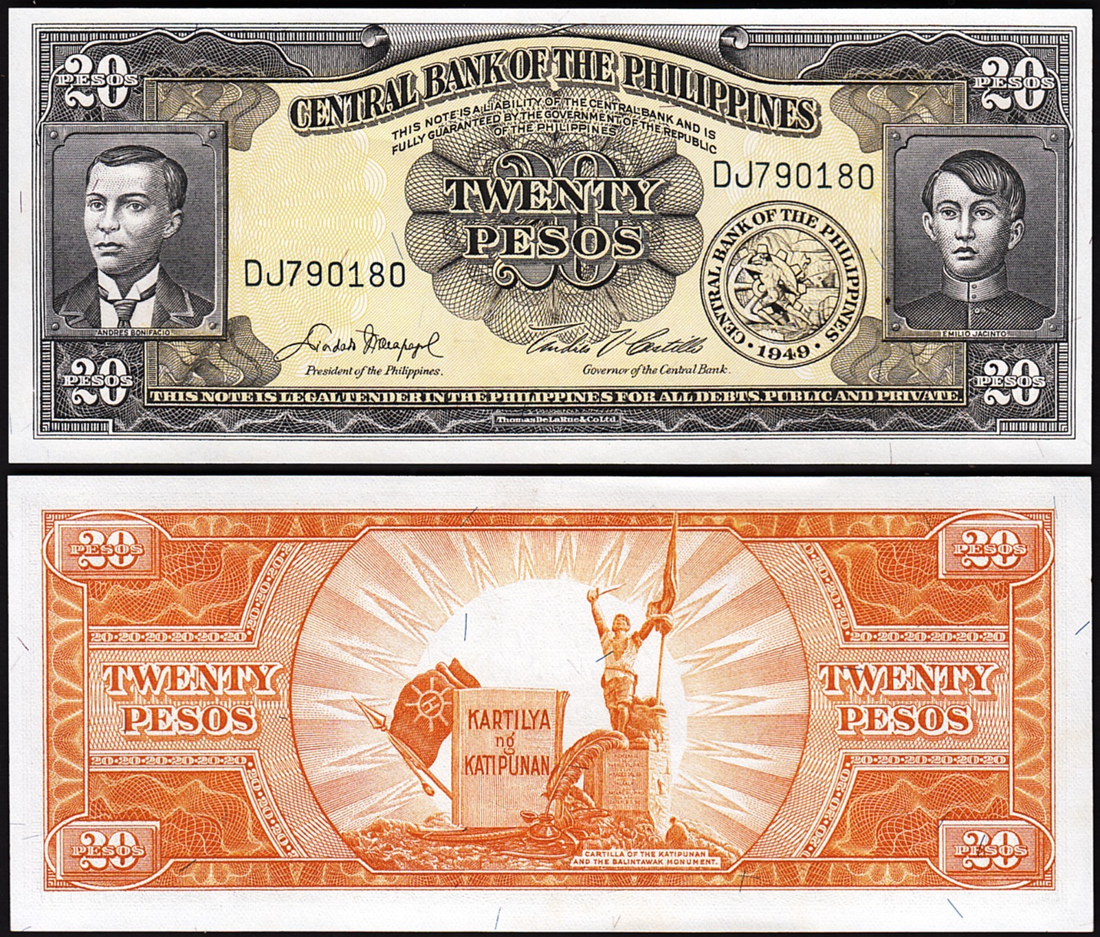PHILIPPINES 20 PESOS 1949, P-137d, SIGN 5