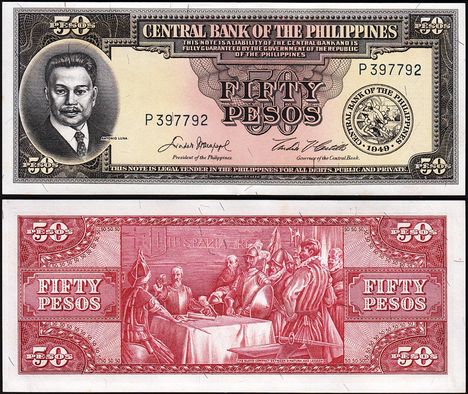PHILIPPINES 50 PESOS 1949, P-138d, SIGN 5