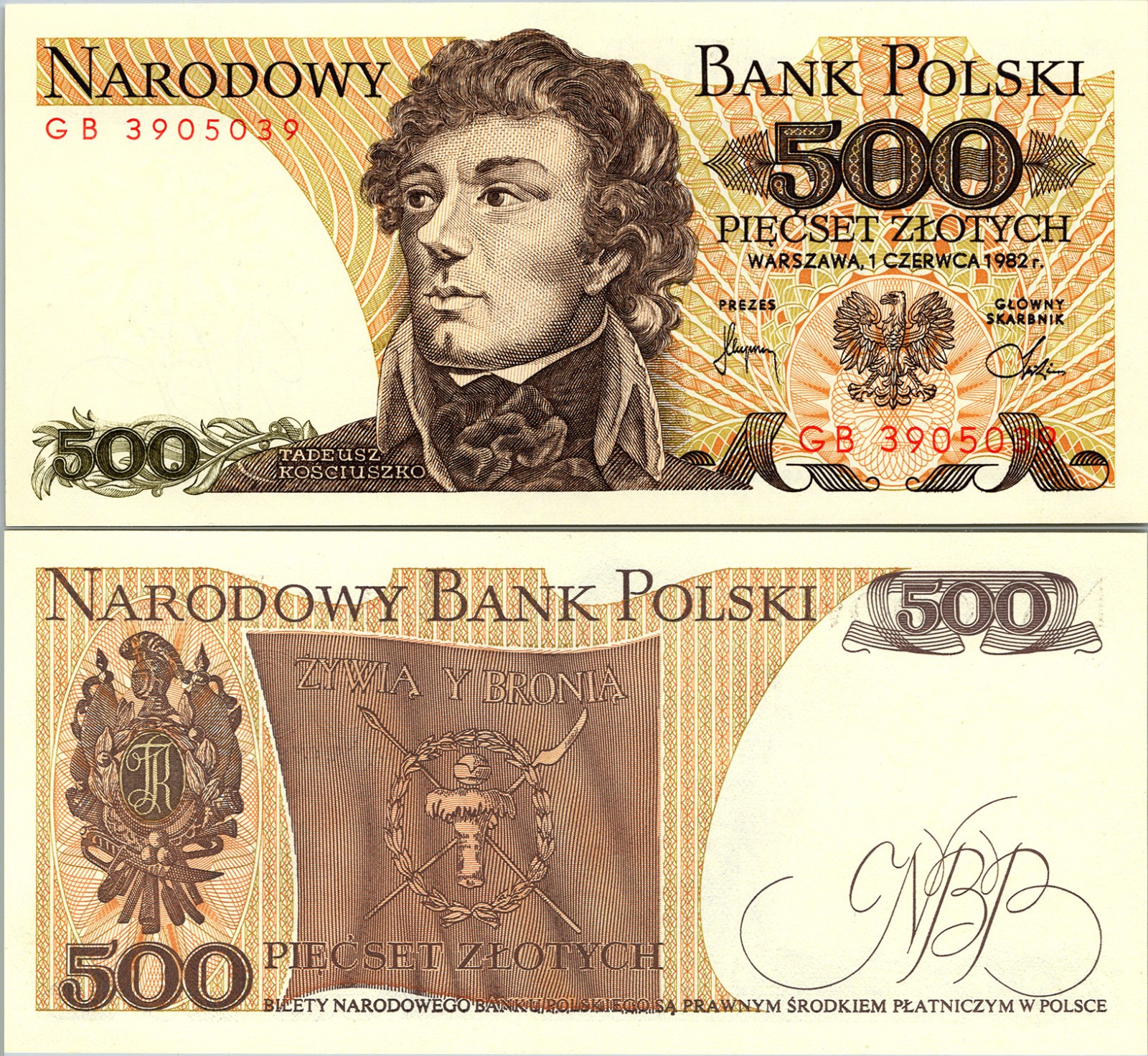 Poland 500 Zloty, 1982, P-145, Prefix GB 3905039