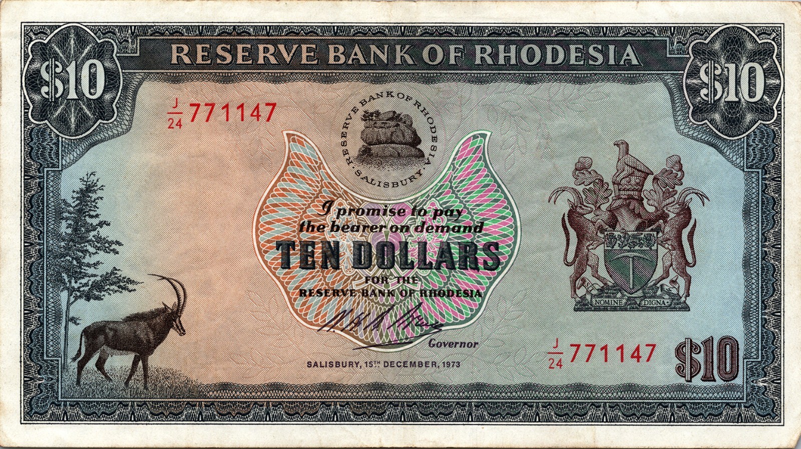 Rhodesia 10 Dollar 15 December 1973, aXF, P-33f
