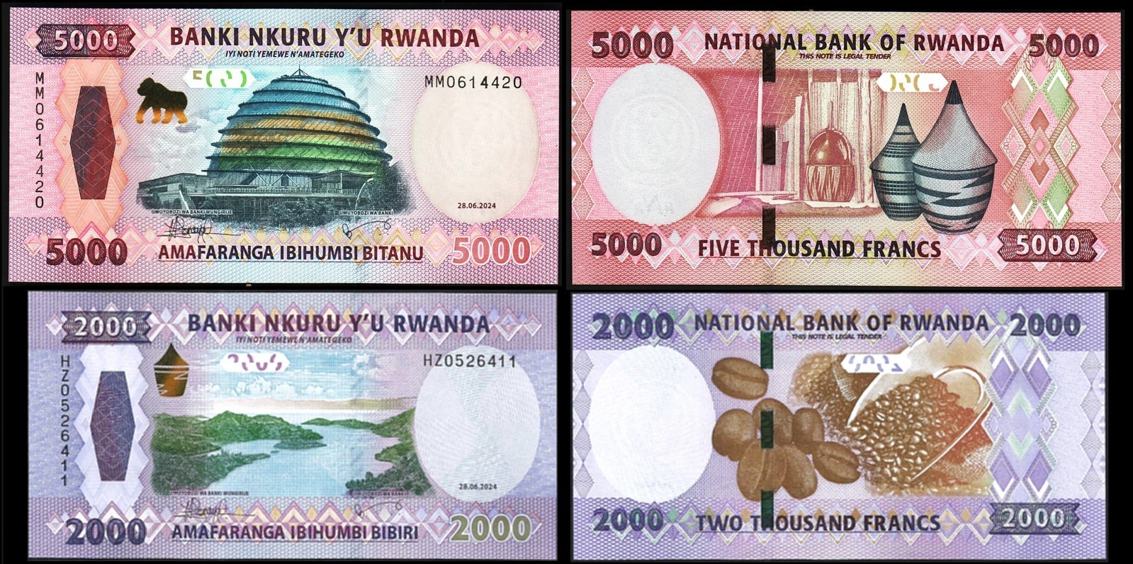 Rwanda 2 Pcs UNC Set, 2000 5000 Francs 2024, P 44 45