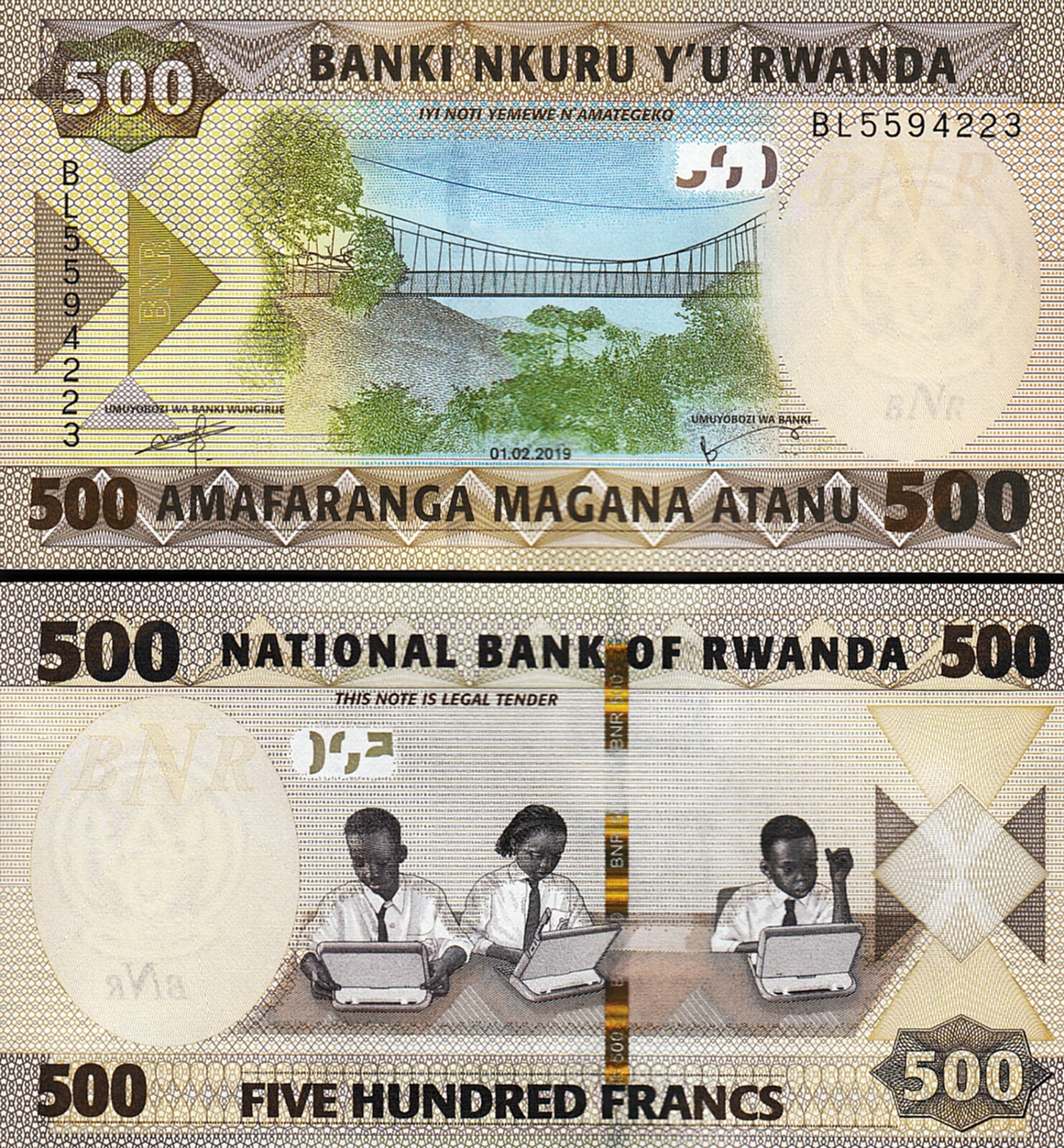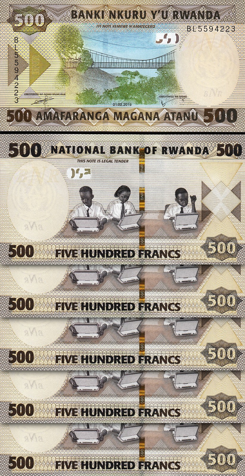 Rwanda 500 Francs 2019, P-42, Prefix BL