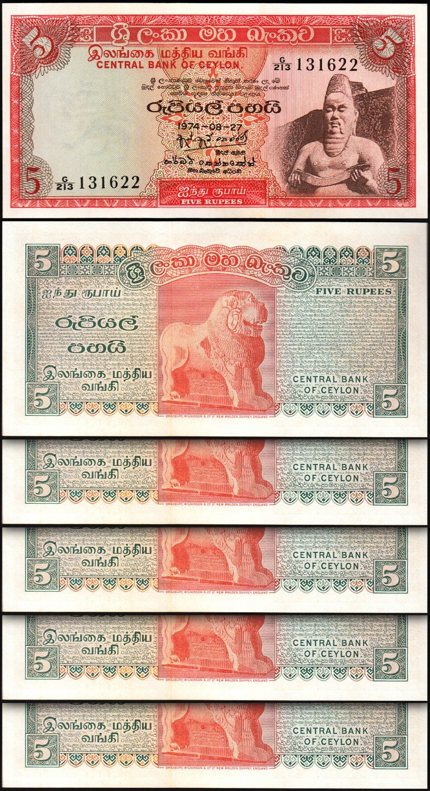 Sri Lanka, Ceylon, 5 Rupees 1974, P-73Aa