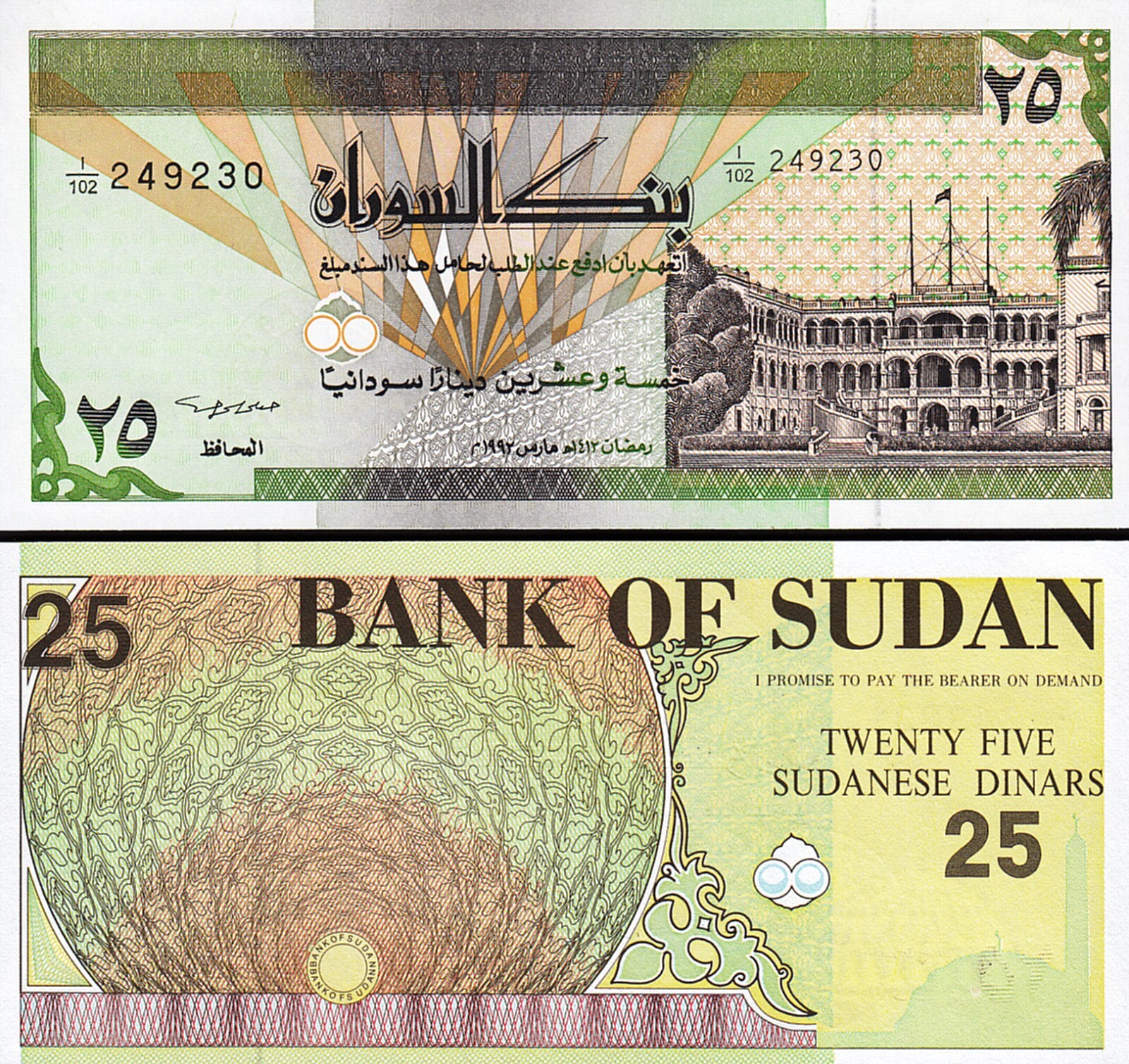 Sudan 25 Dinars, 1992, P-53b