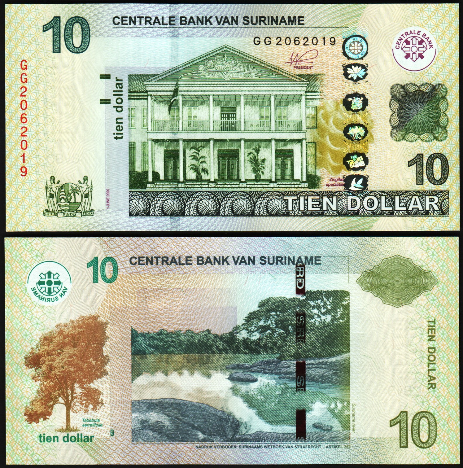 SURINAME 10 DOLLARS 2020, P-163d