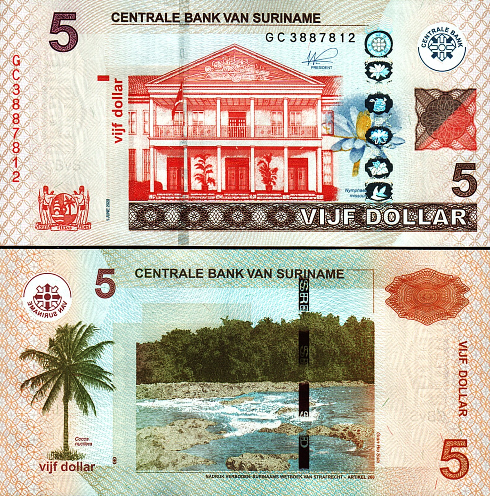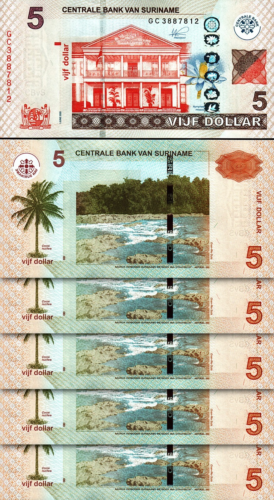 SURINAME 5 DOLLARS 2020, P-162c