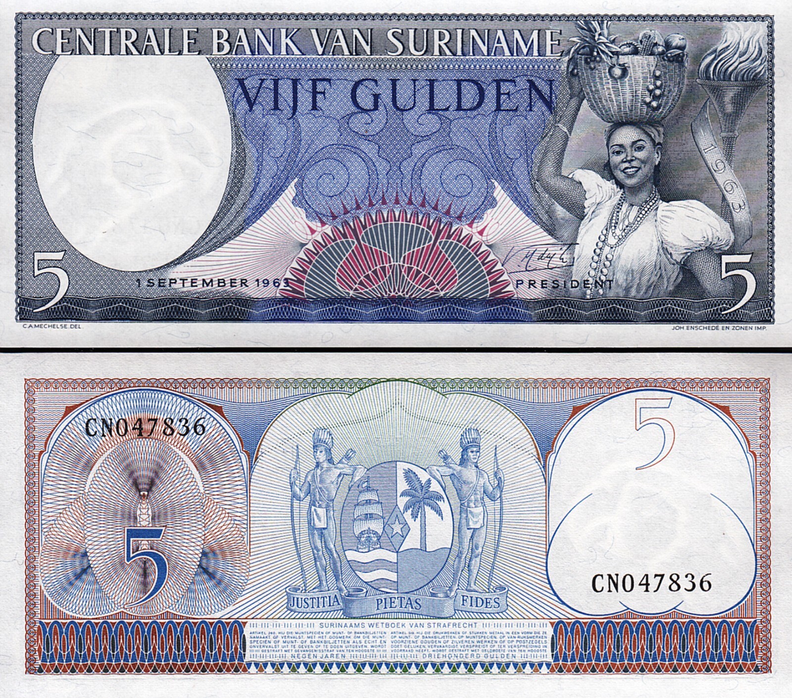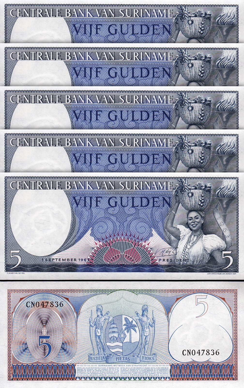 SURINAME 5 GULDEN 1963, P–120b
