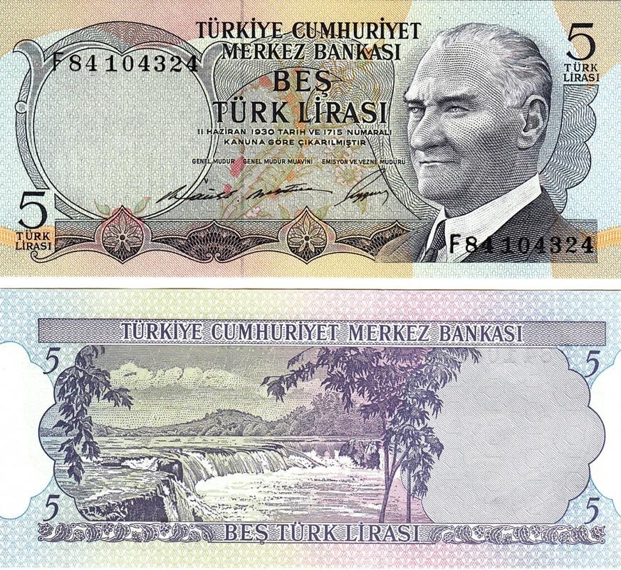 TURKEY 5 LIRA 1968 3 SIGN P.179 – F – SERIAL