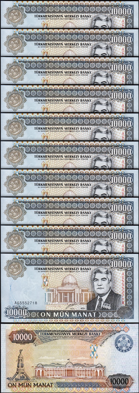 TURKMENISTAN 10000 10,000 MANAT 2000, P.14