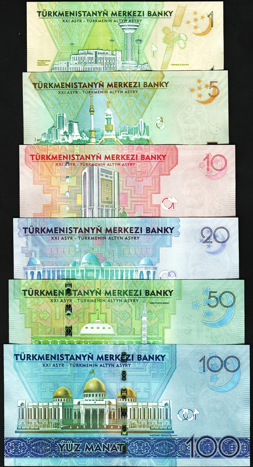 TURKMENISTAN 6 PCS SET, 1 5 10 20 50 100 MANAT 2020