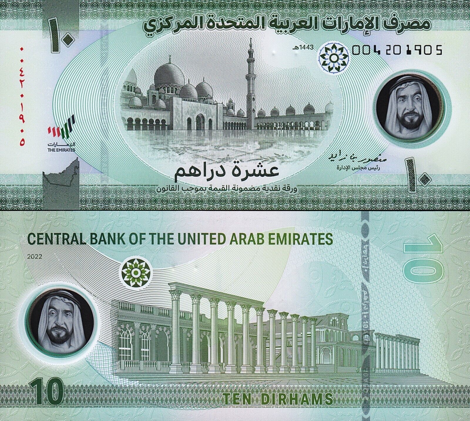 UAE United Arab Emirates 10 Dirhams 2022 (1443), UNC, P-37, POLYMER