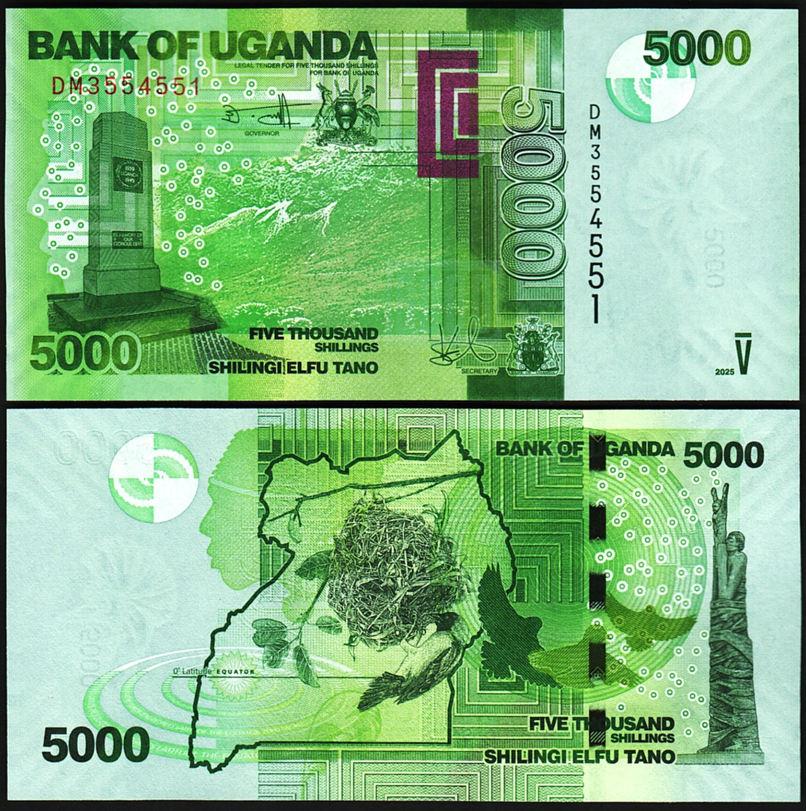 Uganda 5000 Shillings 2025, P-51 New Date, Prefix DM