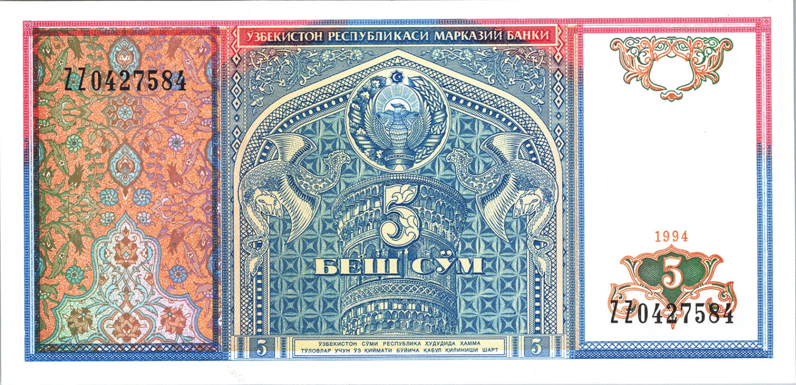 UZBEKISTAN 5 SUM 1994 P.75