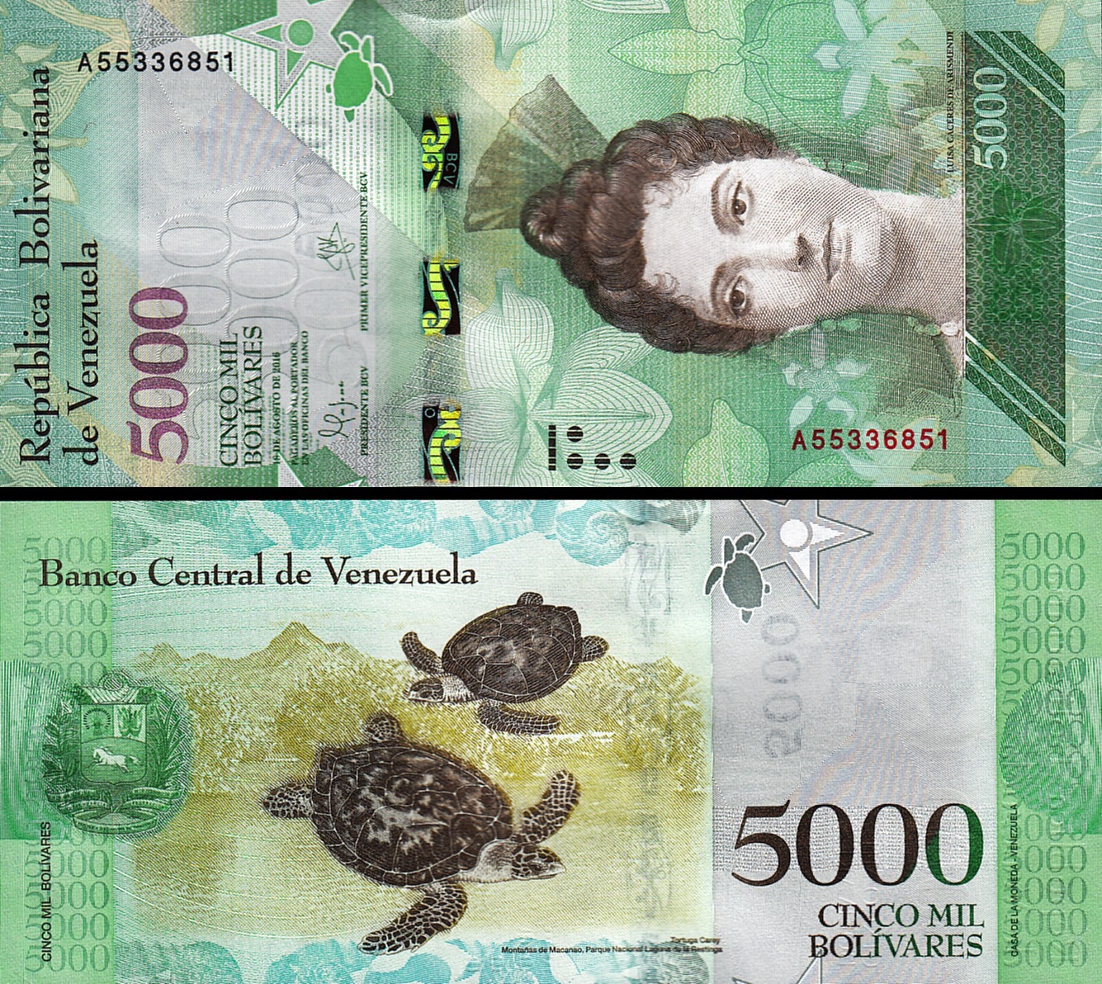 VENEZUELA 5000 BOLIVARES 2016, P-97A, PREFIX A