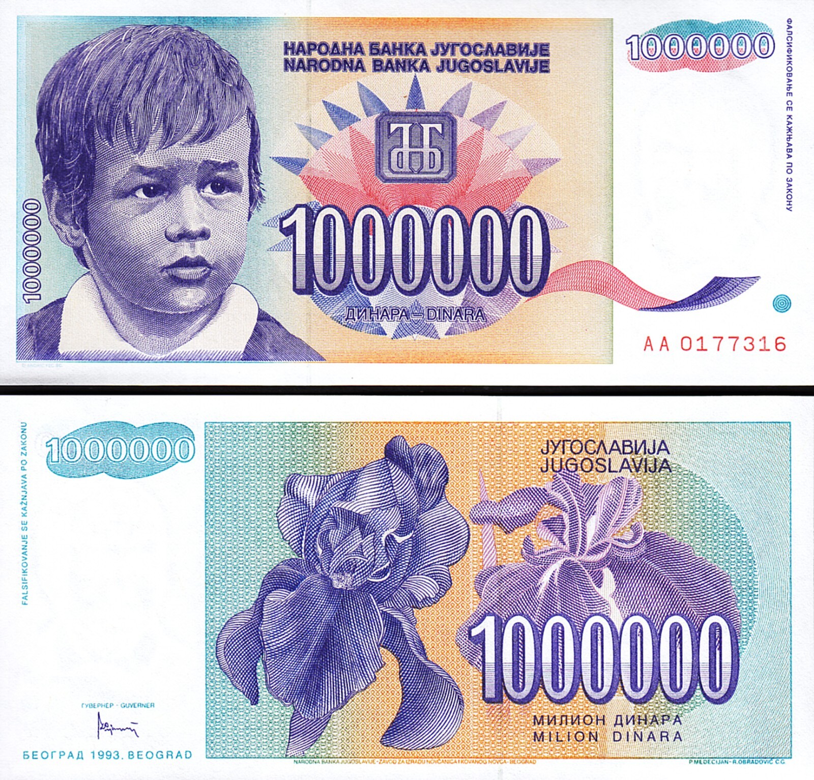 Yugoslavia 1,000,000, 1 Million Dinars 1993, P-120, Prefix AA