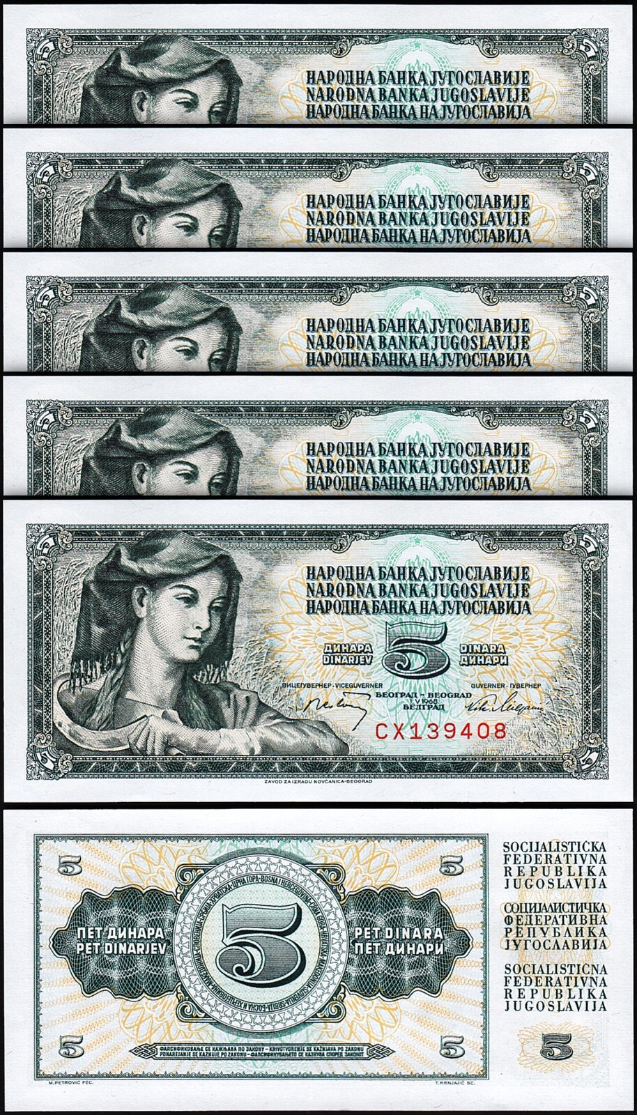 YUGOSLAVIA 5 DINARA 1968, P-81b, (LARGE SERIAL)