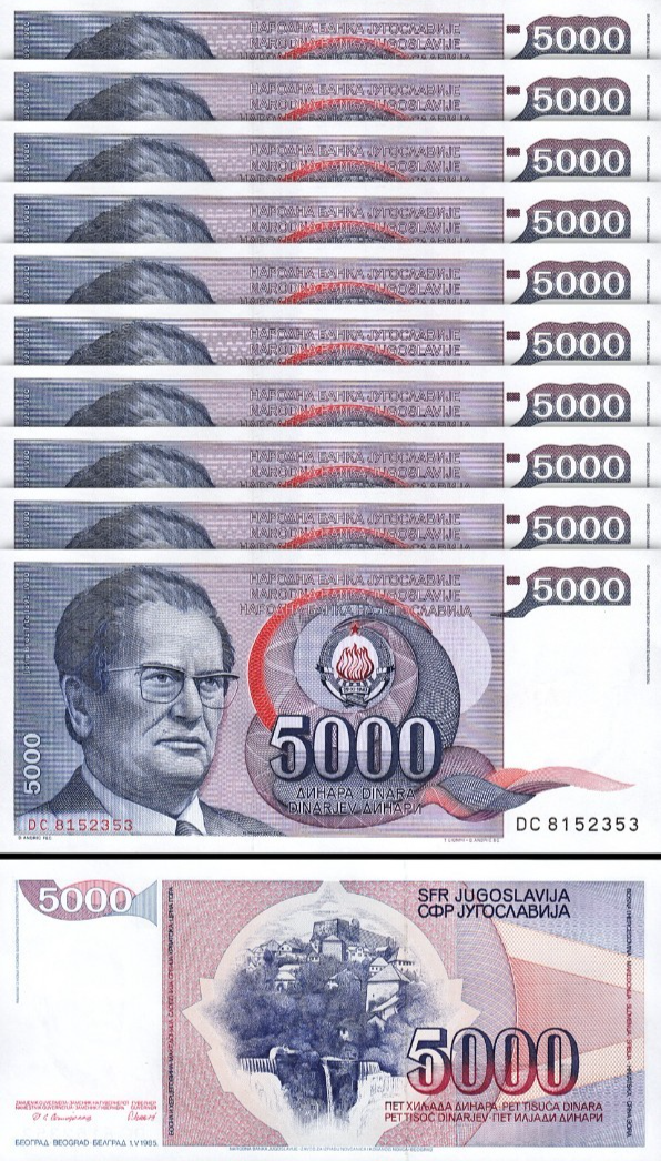 Yugoslavia 5000 Dinars 1985, P-93, Prefix DC