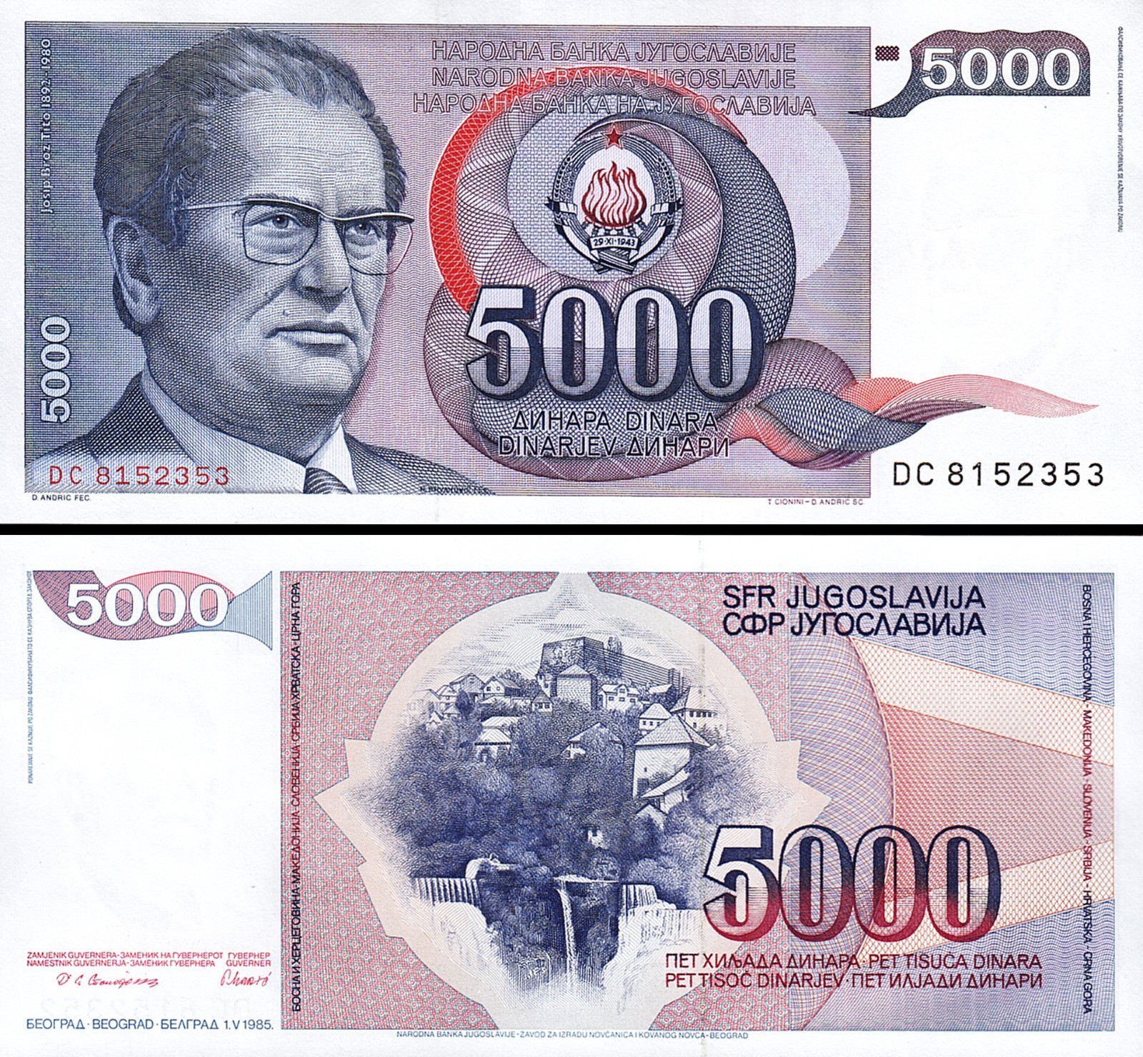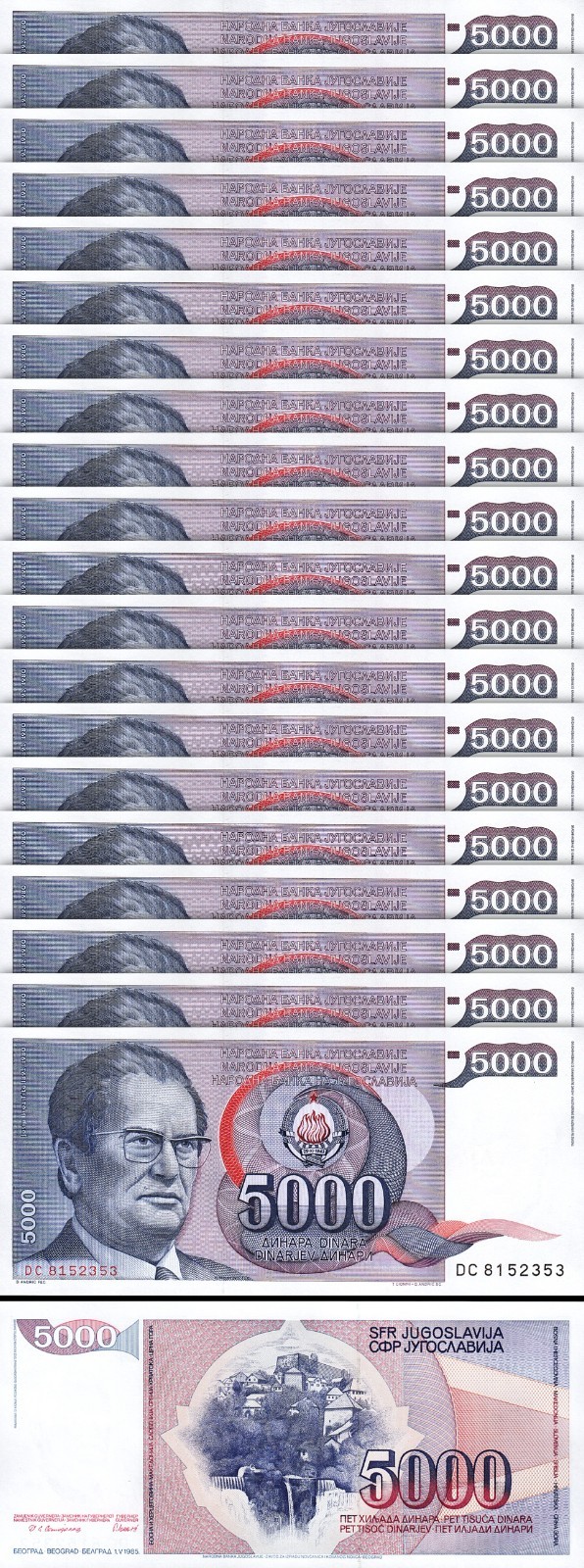 Yugoslavia 5000 Dinars 1985, P-93, Prefix DC