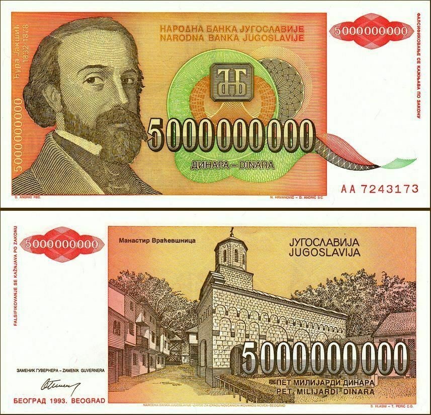 Yugoslavia 5000000000 5,000,000,000 5 Billion Dinara 1993, P-135