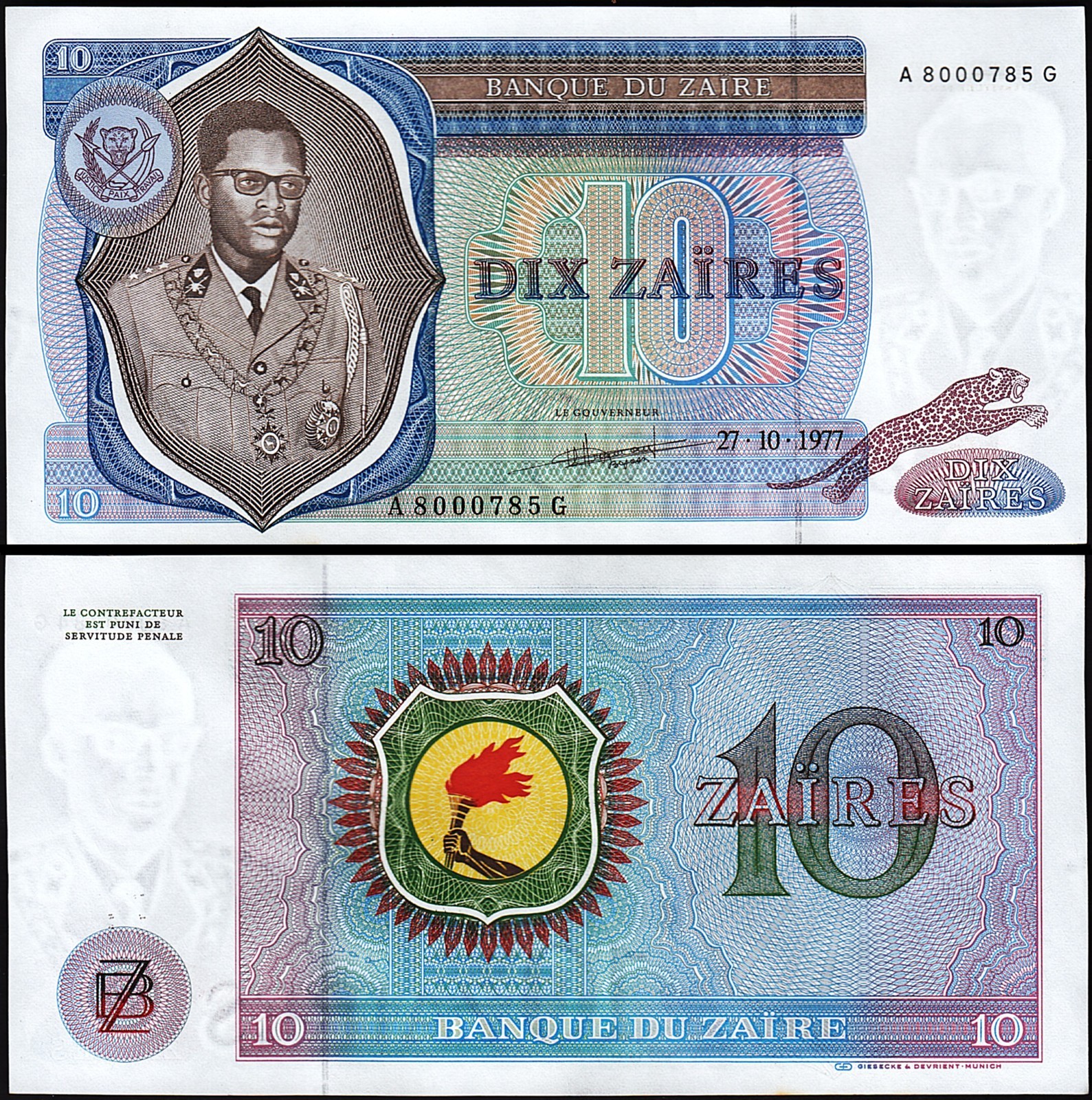 Zaire 10 Zaires 1977, P-23b, Large Banknote