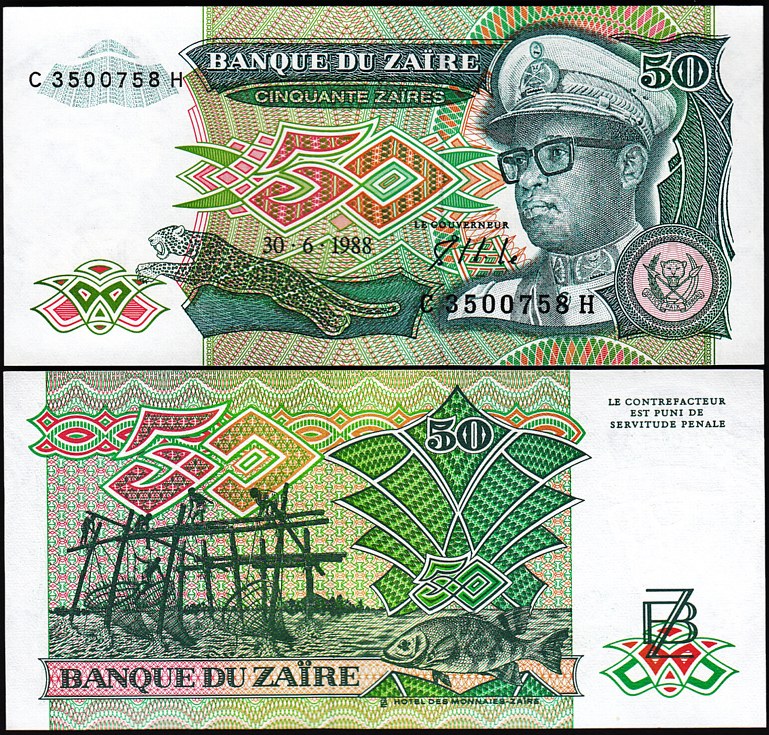 ZAIRE 50 ZAIRES 1988, P-32