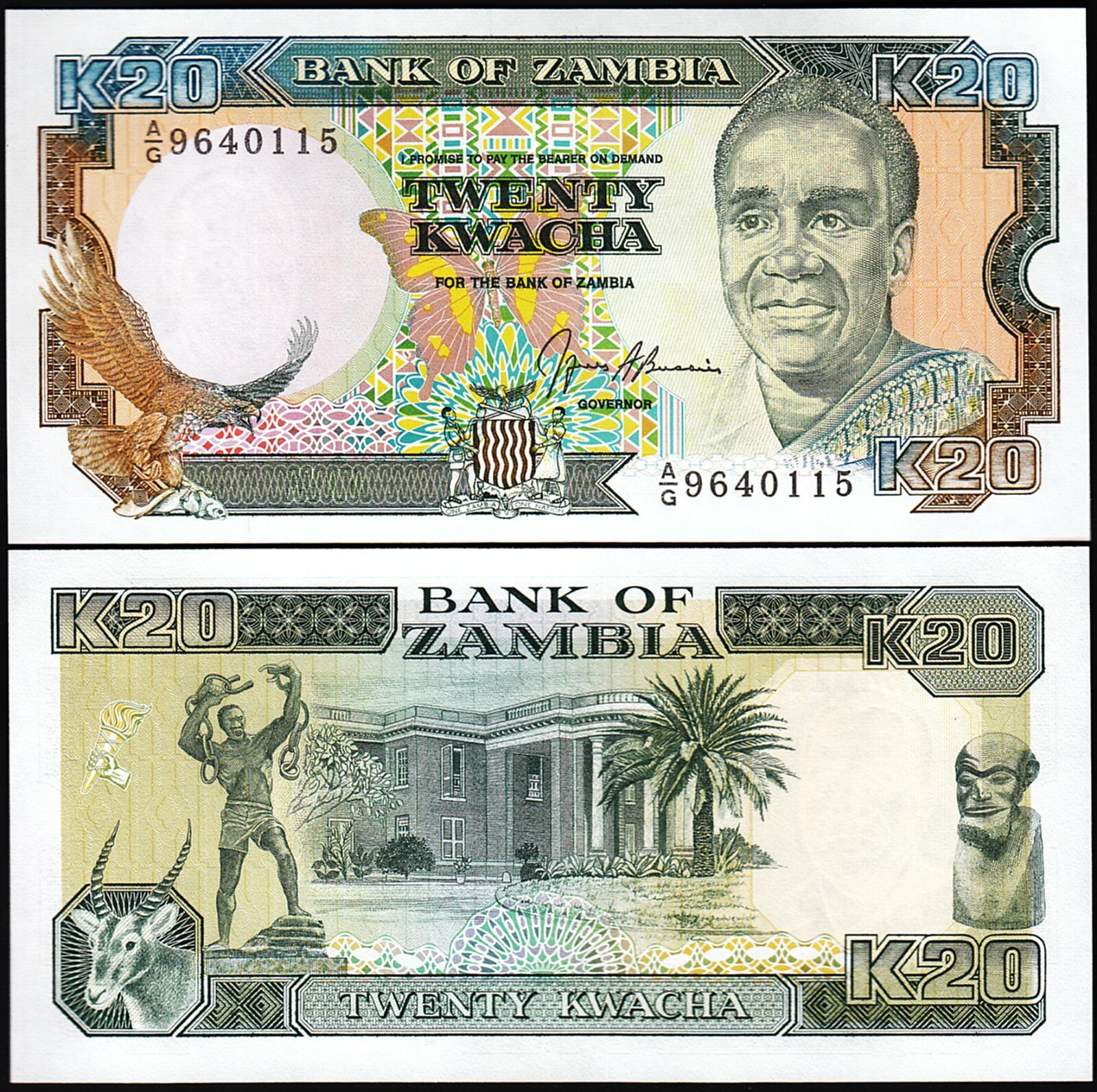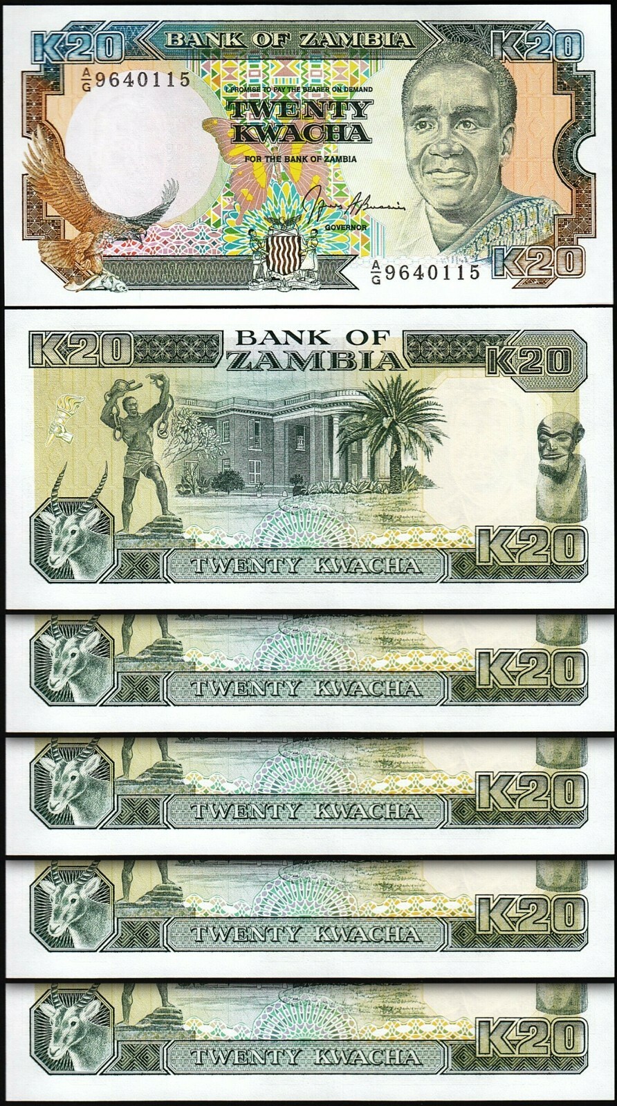 Zambia 20 Kwacha 1989 – 1991, UNC, 5 PCS LOT, P-32b