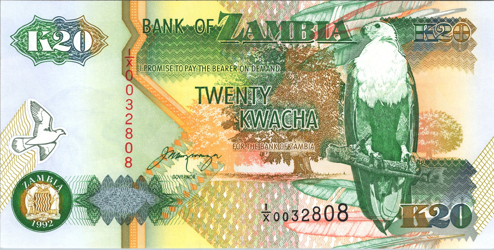ZAMBIA 20 KWACHA 1992, P-36b, Sign 11