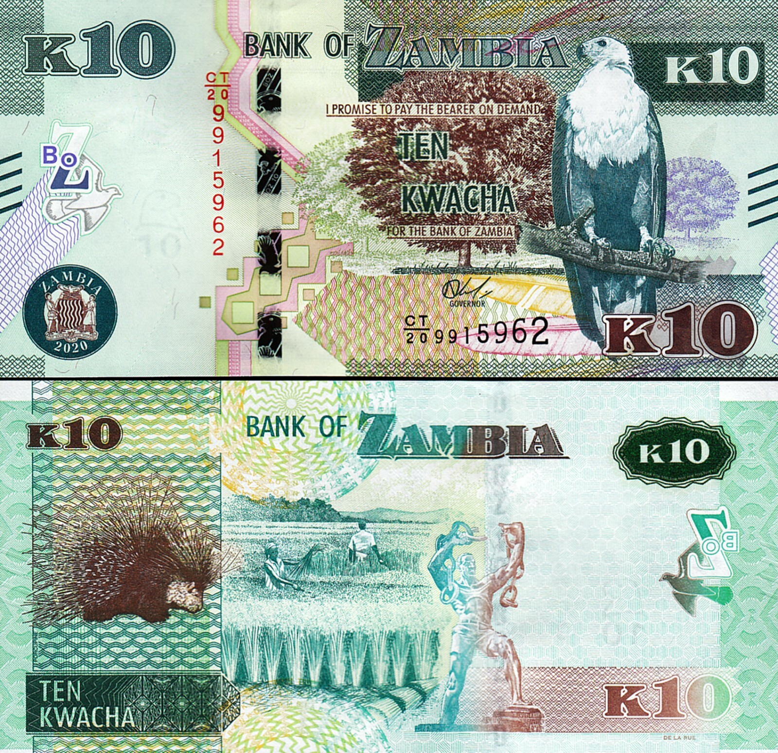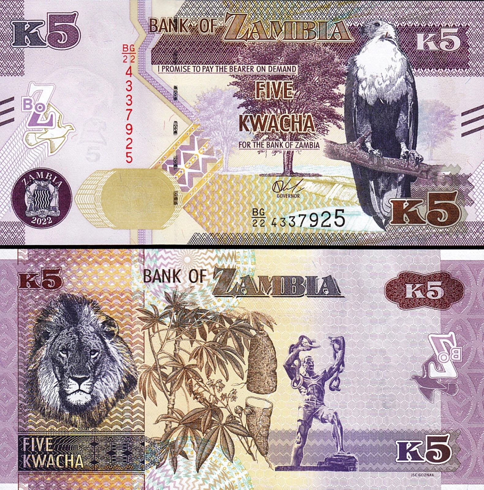 Zambia 4 Pcs SET, 2 5 10 20 Kwacha 2018 2020 2022, UNC, P-56 57 58 59