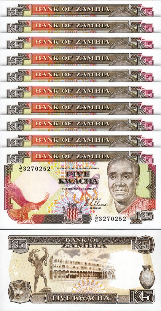ZAMBIA 5 KWACHA 1989, P-30, SIGN 8