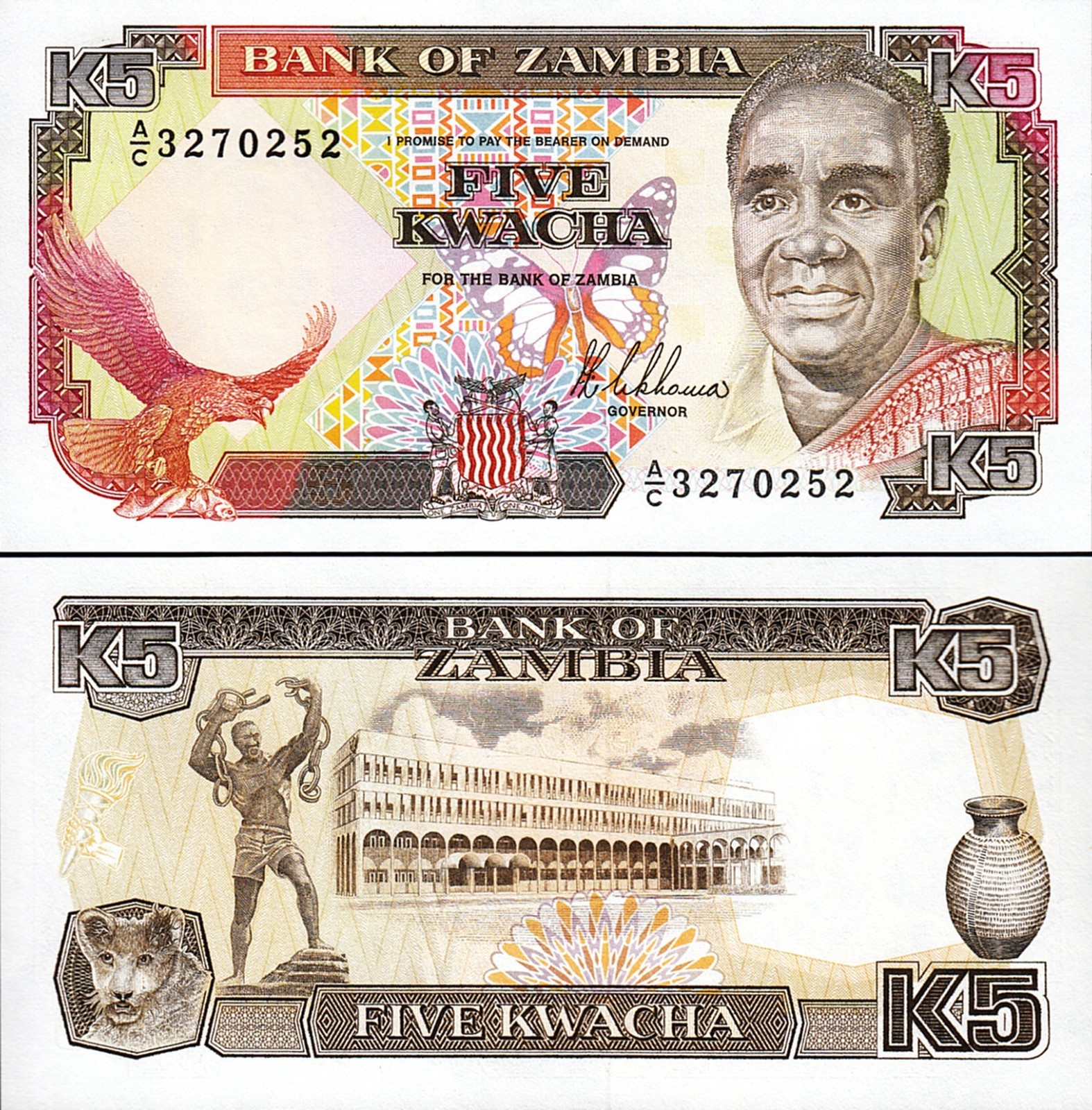 ZAMBIA 5 KWACHA 1989, P-30, SIGN 8