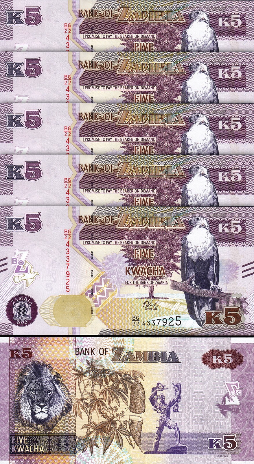 ZAMBIA 5 KWACHA 2022, P-57 New Date