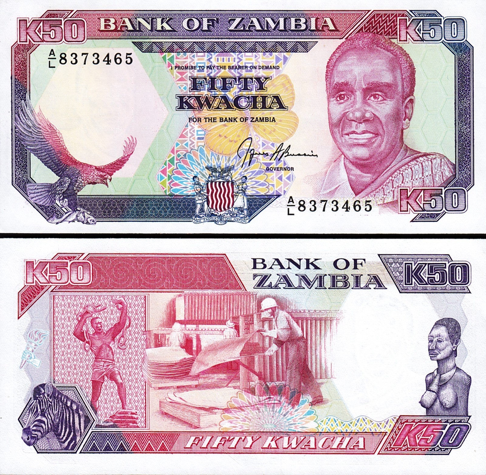ZAMBIA 50 KWACHA 1989-1991, P-33B, SIGN 9